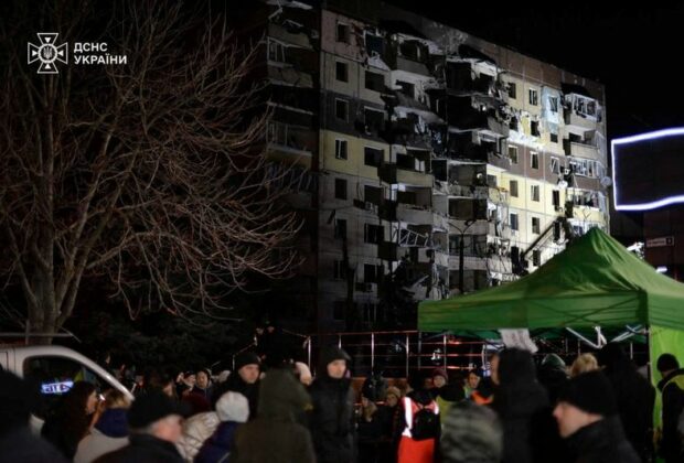 5/5 © Reuters. View of the damage on a building after a Russian missile slammed into two apartment buildings in ...