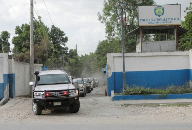 © Reuters. FILE PHOTO: A convoy of cars carrying members of a Kenyan delegation leave the premises of Haitian National ...
