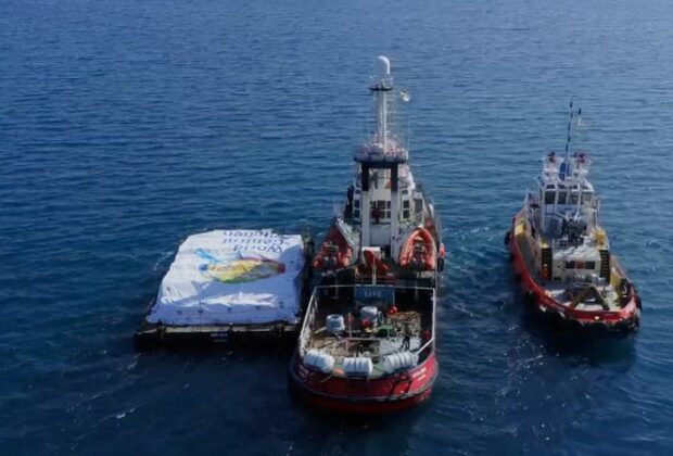 5/5 © Reuters. Aid ship sails, amidst a test to launch a new sea route from a port in Cyprus ...