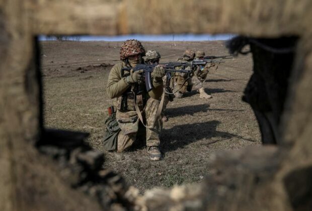 2/2 © Reuters. Ukrainian servicemen of 79th brigade take part in training, amid Russia’s attack on Ukraine, in Donetsk region, ...