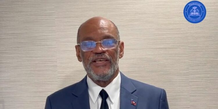© Reuters. Haiti’s Prime Minister Ariel Henry speaks while addressing the nation, at an unidentified location on a date given as March 11, 2024, in this screengrab obtained from a handout video. Prime Minister of the Republic of Haiti via X/Handout via REUTERS