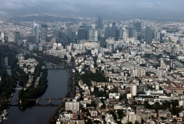 © Reuters. FILE PHOTO: An aerial view shows the Seine River and the skyline of La Defense financial and business ... -