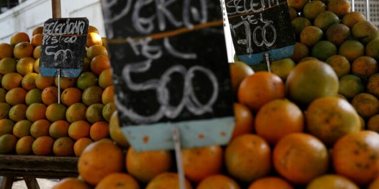 © Reuters. FILE PHOTO: Oranges are displayed for sale at a street market in Rio de Janeiro, Brazil February 15, 2018. REUTERS/Pilar Olivares/File Photo