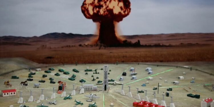 © Reuters. FILE PHOTO: A view shows a model of a nuclear test at the museum of the Semipalatinsk Test Site, one of the main locations for nuclear testing in the Soviet Union, in the town of Kurchatov in the Abai Region, Kazakhstan November 7, 2023. REUTERS/Pavel Mik