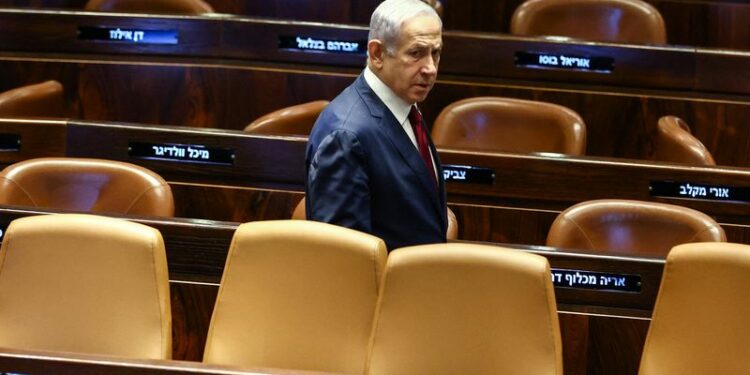 © Reuters. Israeli Prime Minister Benjamin Netanyahu looks on as Israel’s parliament is scheduled to elect its two members to the committee that appoints judges, at the plenum of the Knesset, Israel’s parliament, in Jerusalem, June 14, 2023. REUTERS/Ronen Zvulun/Fil